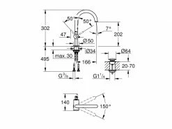 GROHE Lavaboarmatur Atrio 1/2″, Steel, Wandmontage, Hebelgriffe